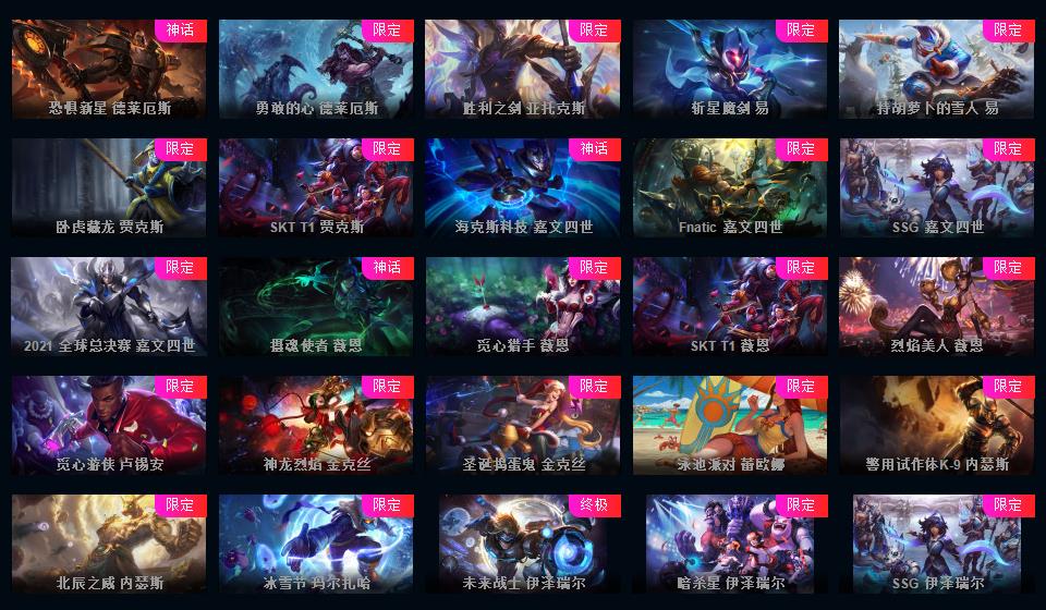 【黑色玫瑰】933皮肤真实伤害亚索至臻 王国机神玄武盖伦至臻 KDA二代卡莎至臻 KDA一代卡莎至臻 星之守护者妮蔻至臻 源计划正义艾瑞莉娅至臻 玉剑传说武剑仙至臻 黑夜使者李青至臻 海克斯科技安妮 海克斯科技瑟庄妮 海克斯科技雷克顿 海克斯科技斯维因 海克斯科技波比 海克斯科技嘉文四世 海克斯科技阿利斯塔 永恒之森奥恩 暗星科加斯 黎明使者卡尔玛 恐惧新星德莱厄斯 零之枪骑赫卡里姆 摄魂使者薇恩 胜利女神希维尔 哥特萝莉安妮